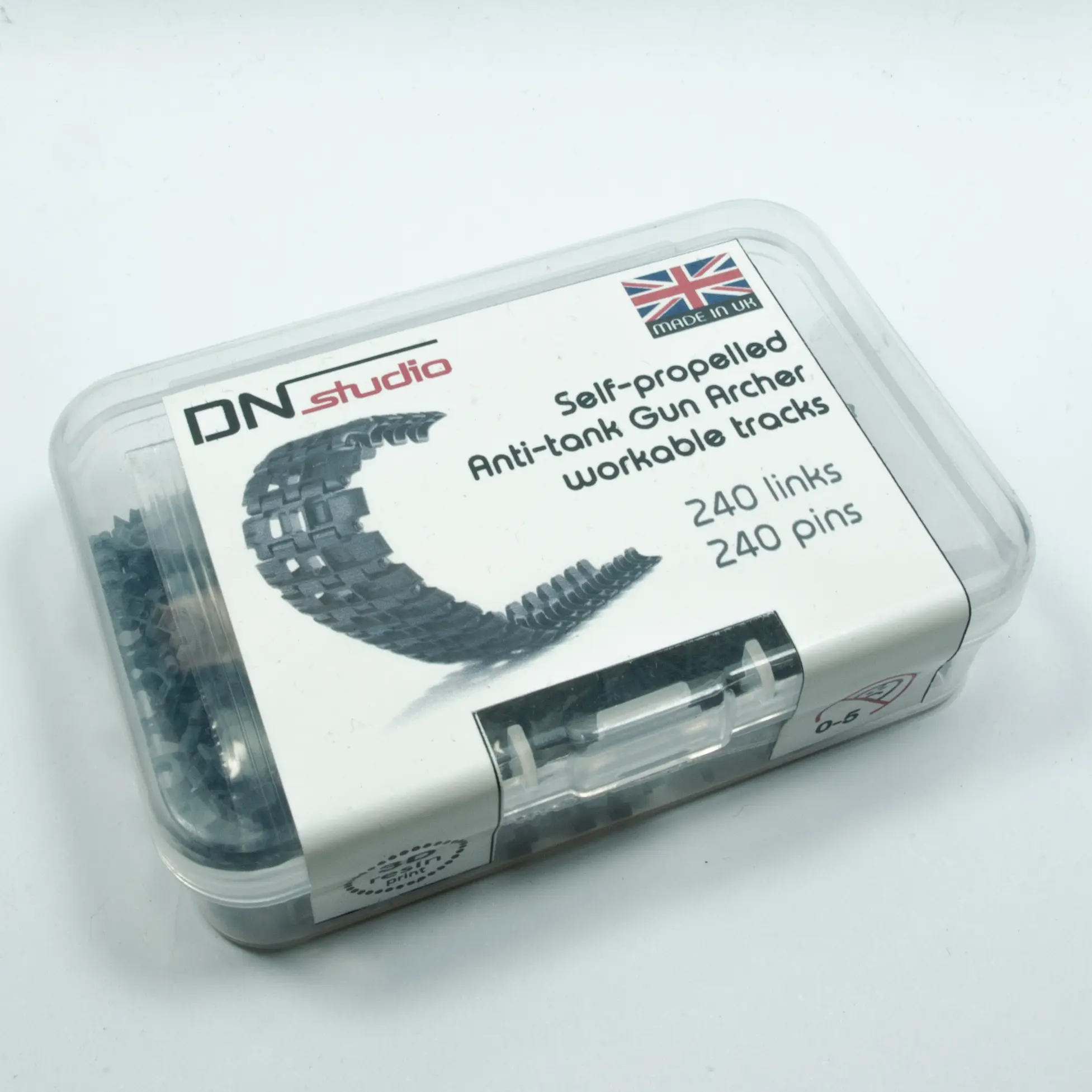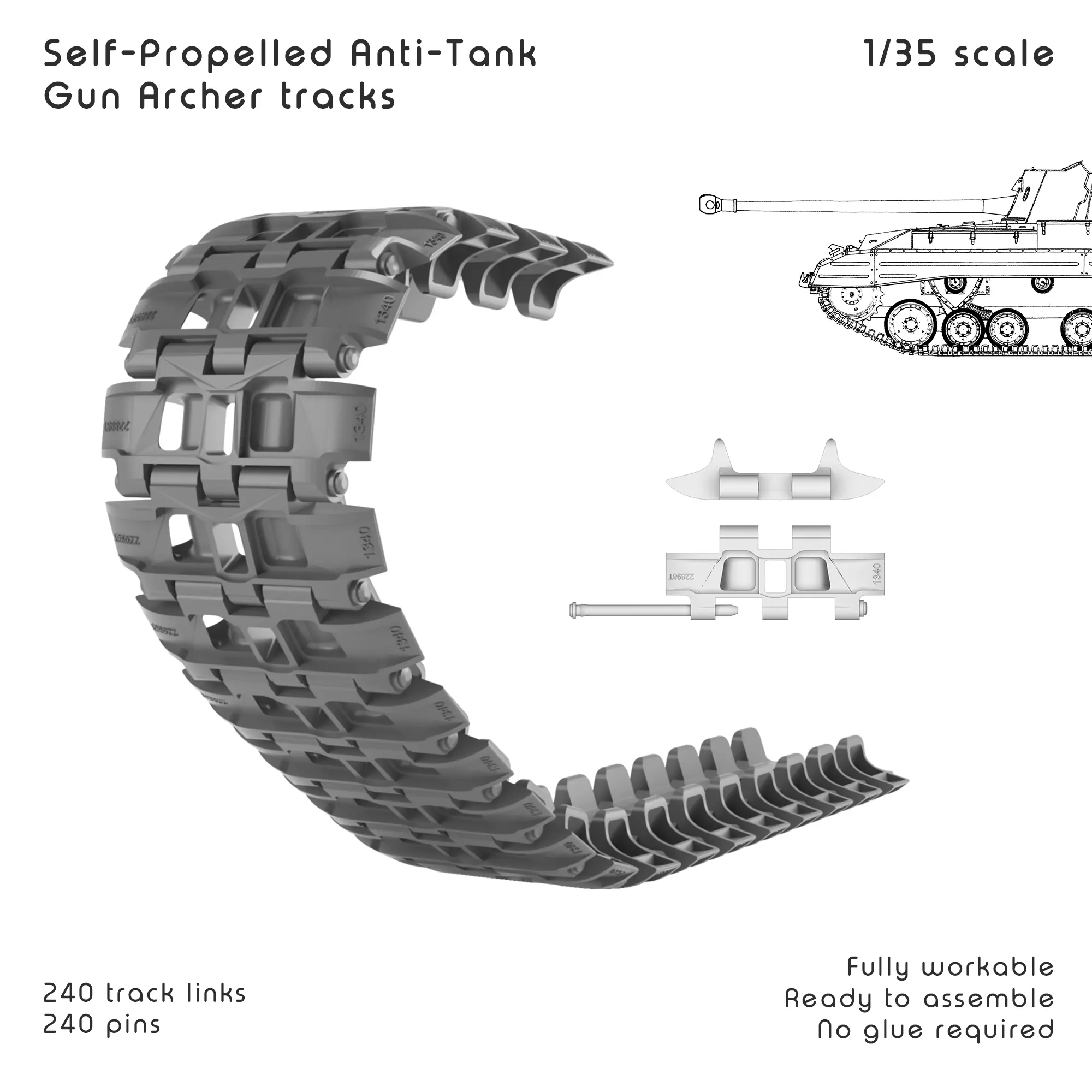 The product is a 1/35 scale workable track set for the British Self-Propelled Anti-Tank Gun Archer. This resin-printed replica is designed for a Tamiya kit. This high‑quality resin printed track set delivers unmatched precision and value. Perfect for modelers and military vehicle enthusiasts seeking realistic detail without a premium price tag.