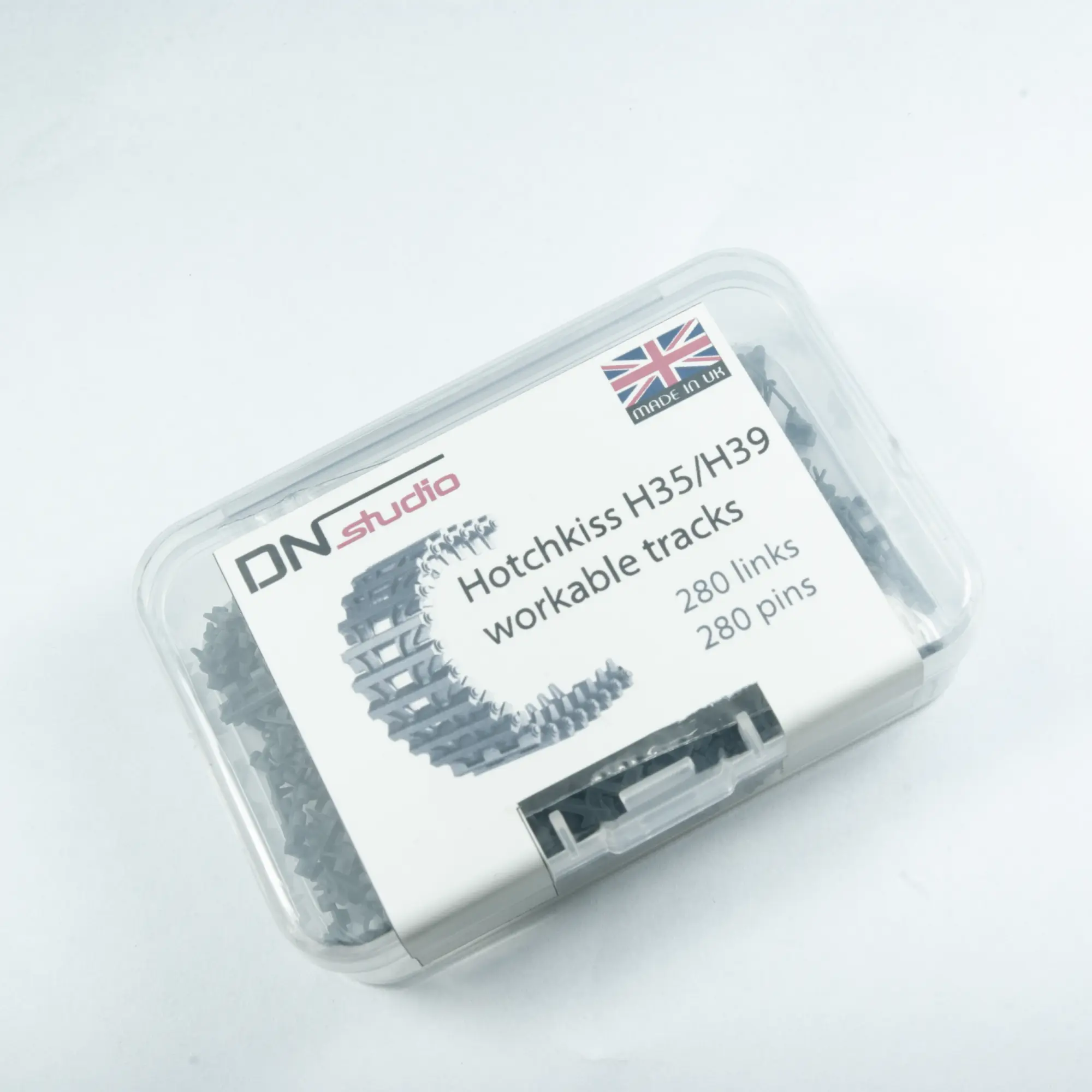 The product is a 1/35 scale workable track set for the Hotchkiss H35/H39 tank. This resin-printed replica is designed for a Tamiya 35352. This high‑quality resin printed track set delivers unmatched precision and value. Perfect for modelers and military vehicle enthusiasts seeking realistic detail without a premium price tag.