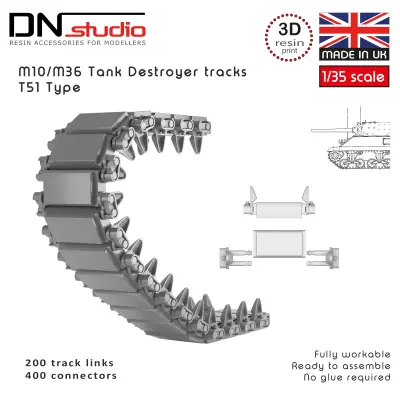 This 1/35 scale M10/36 tank destroyer workable tracks T51 type set is a high-detail resin tracks set designed for scale model kits. This set has been tested with Tamiya, MENG, Dragon, Asuka, TAKOM, Miniart and RFM model kits, these workable resin tracks provide realistic sag, accurate track links and authentic appearance for 1/35 AFV and military vehicle models.