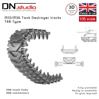 This 1/35 scale M10/36 tank destroyer workable tracks T48 type set is a high-detail resin tracks set designed for scale model kits. This set has been tested with Tamiya, MENG, Dragon, Asuka, TAKOM, Miniart and RFM model kits, these workable resin tracks provide realistic sag, accurate track links and authentic appearance for 1/35 AFV and military vehicle models.