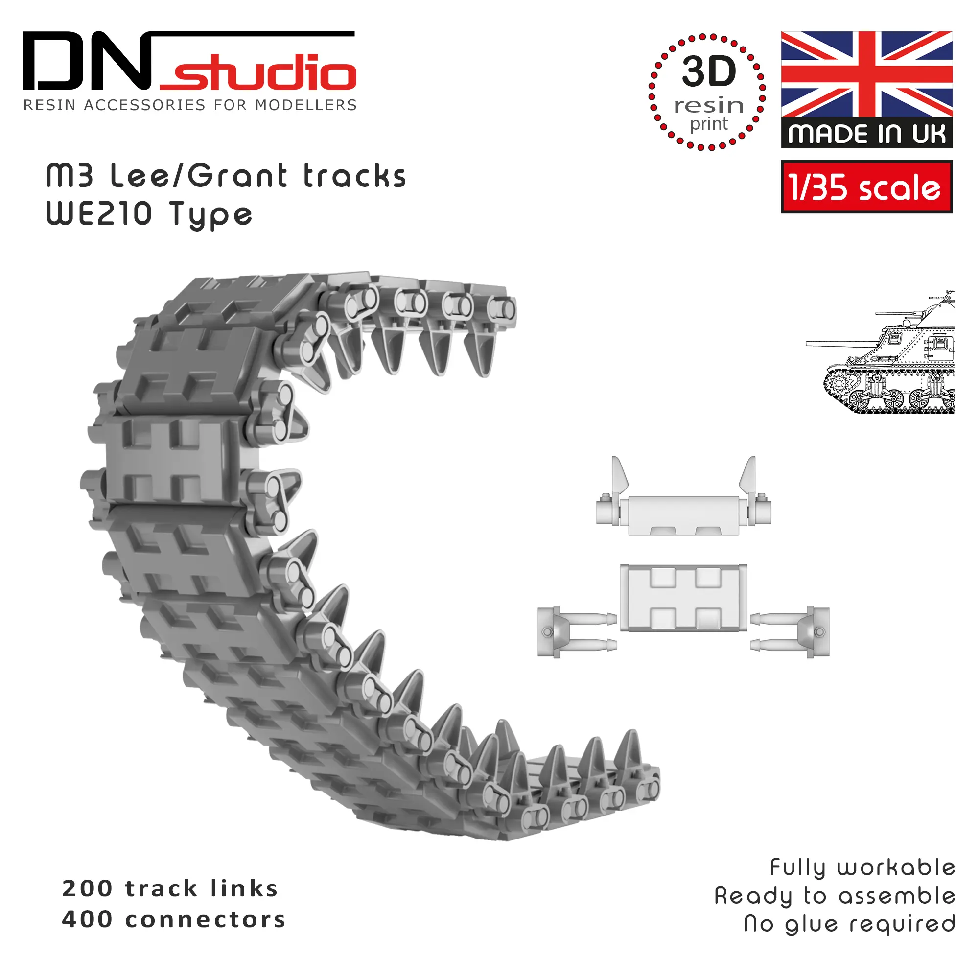 - 1/35 scale M3 Lee/Grant tank workable tracks WE210 type