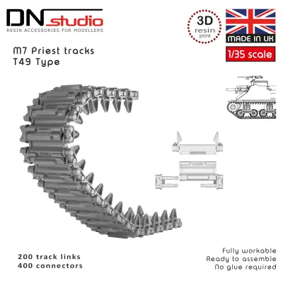 This 1/35 scale M7 Priest Howitzer workable tracks T49 type set is a high-detail resin tracks set designed for scale model kits. This set has been tested with Tamiya, MENG, Dragon, Asuka, TAKOM, Miniart and RFM model kits, these workable resin tracks provide realistic sag, accurate track links and authentic appearance for 1/35 AFV and military vehicle models.
