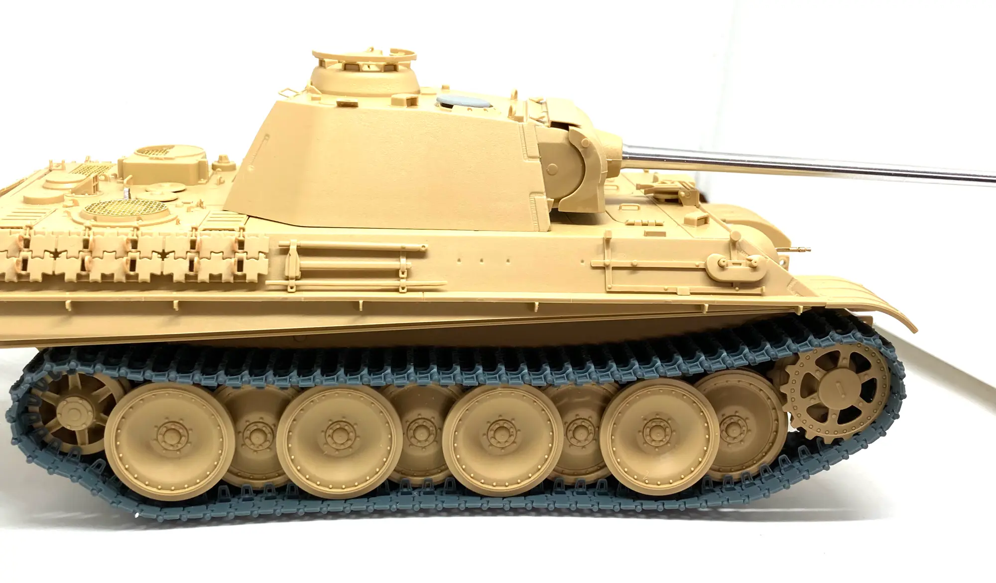 Late-war Panther tracks (mostly Ausf. G, mid-1944 onward) show a few telltale changes driven by cost-cutting and durability needs: