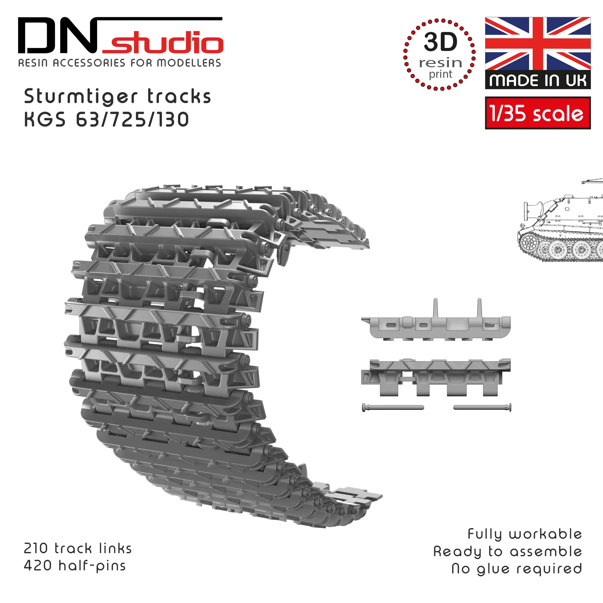 The product is a 1/35 scale workable tracks set for the WWII Sturmtiger german tank. This resin-printed replica had been tested on Tamiya, RFM, Border models, Dragon, Takom and Italieri scale modeling kits. This high‑quality resin printed tracks set delivers unmatched precision and value. Perfect for modelers and military vehicles enthusiasts seeking realistic detail without a premium price tag.